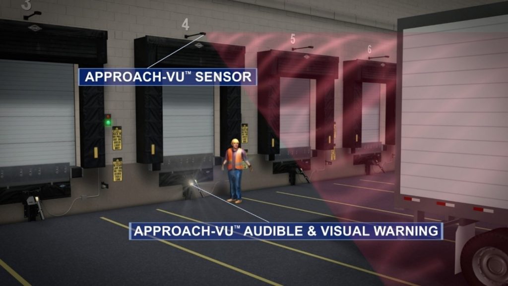 Ez a megoldás pótkocsi jelenlétére figyelmeztető hang és vizuális figyelmeztetésére szolgál. Az „Approach-Vu™ egy olyan figyelmeztető rendszer a gyalogosok számára, amelyet a tolató jármű jelenléte aktivál. Ez a speciális figyelmeztetés azt jelzi, hogy a fenyegető veszély miatt azonnal el kell hagyni a tolatási területet. A rendszer közvetlenül a dokkoló külső falára szerelhető, vagy a járműrögzítők részeként beszerelhető.