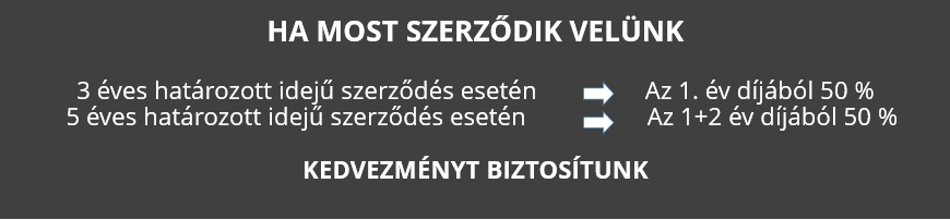 A 50%-os kedvezményes időszakokat a 2021. 08.31-ig beérkező szerződésekre tudjuk garantálni.