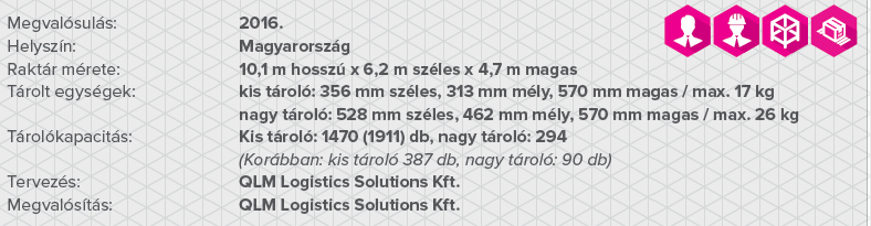 A technológiai ötletünk alapján magyar mérnökökkel, technikusokkal, gyártókkal közösen terveztük meg, gyártattuk le a komponenseket és valósítottuk meg a QLM Maximized-et. Ez egy alapvetően magyar raktártechnikai megoldás! Az automata raktárrendszer bizonyított, az elvárásokat teljesíti. A megrendelő termelési területéről eltűntek a tárolóegységek, a felszabaduló területeken újabb termelőegységeket lehetett beüzemelni, így újabb – jelentős beruházási költséggel bíró – gyártócsarnok építése nélkül tudja a termelést bővíteni, profitot növelni.
